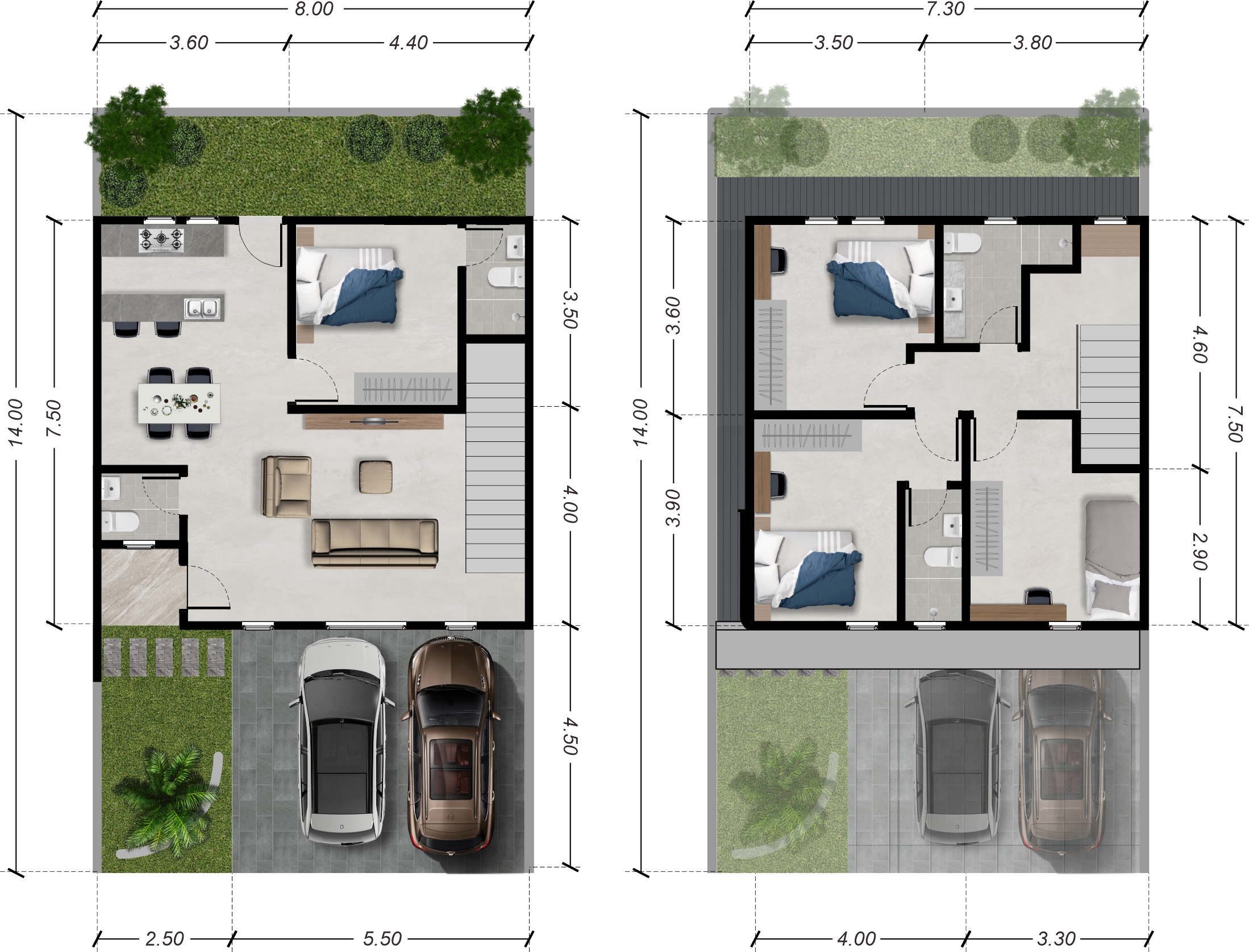 3 | 3 | 2 | 80m² | 102m²